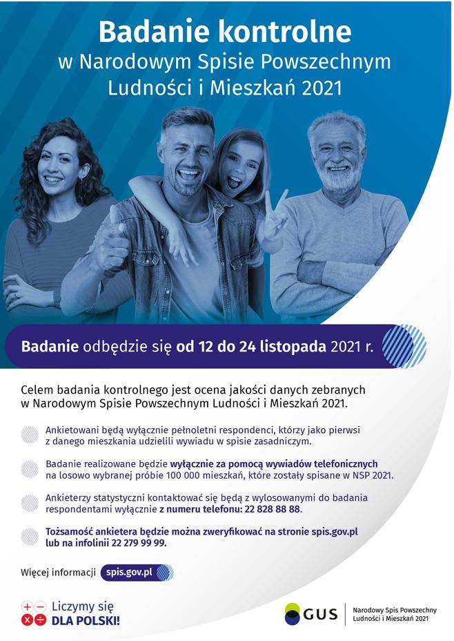 W dniach 12-24 listopada br. odbędzie się obowiązkowe badanie kontrolne w NSP 2021. Jeżeli zostałeś wylosowany do badania kontrolnego zadzwoni do Ciebie rachmistrz – nie odmawiaj, weź udział w badaniu.