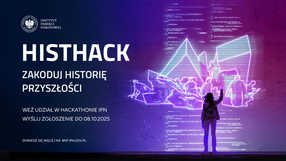 uprzejmie przypominamy o trwających zgłoszeniach do drugiej edycji ogólnopolskiego hackathonu IPN „HISTHACK” – wyjątkowego konkursu dla uczniów szkół ponadpodstawowych. To świetna okazja, by połączyć pasję do nowych technologii z odkrywaniem historii Polski.