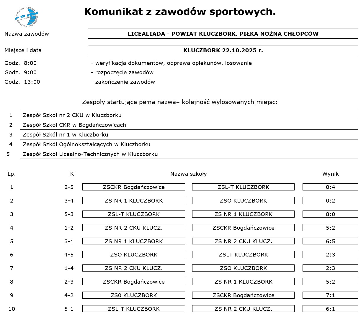 Kalendarz powiatowych imprez sportowych